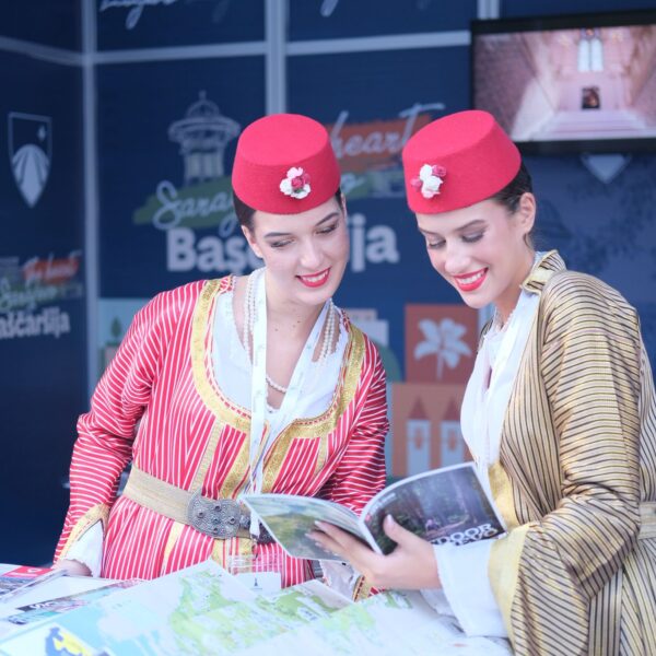 Na štandu Općine Stari Grad Sarajevo posjetioce su dočekale djevojke iz Kulturno-umjetničkog društva “Baščaršija”, koje su upotpunile predstavljanje našeg grada i općine bogatim kulturnim sadržajem.