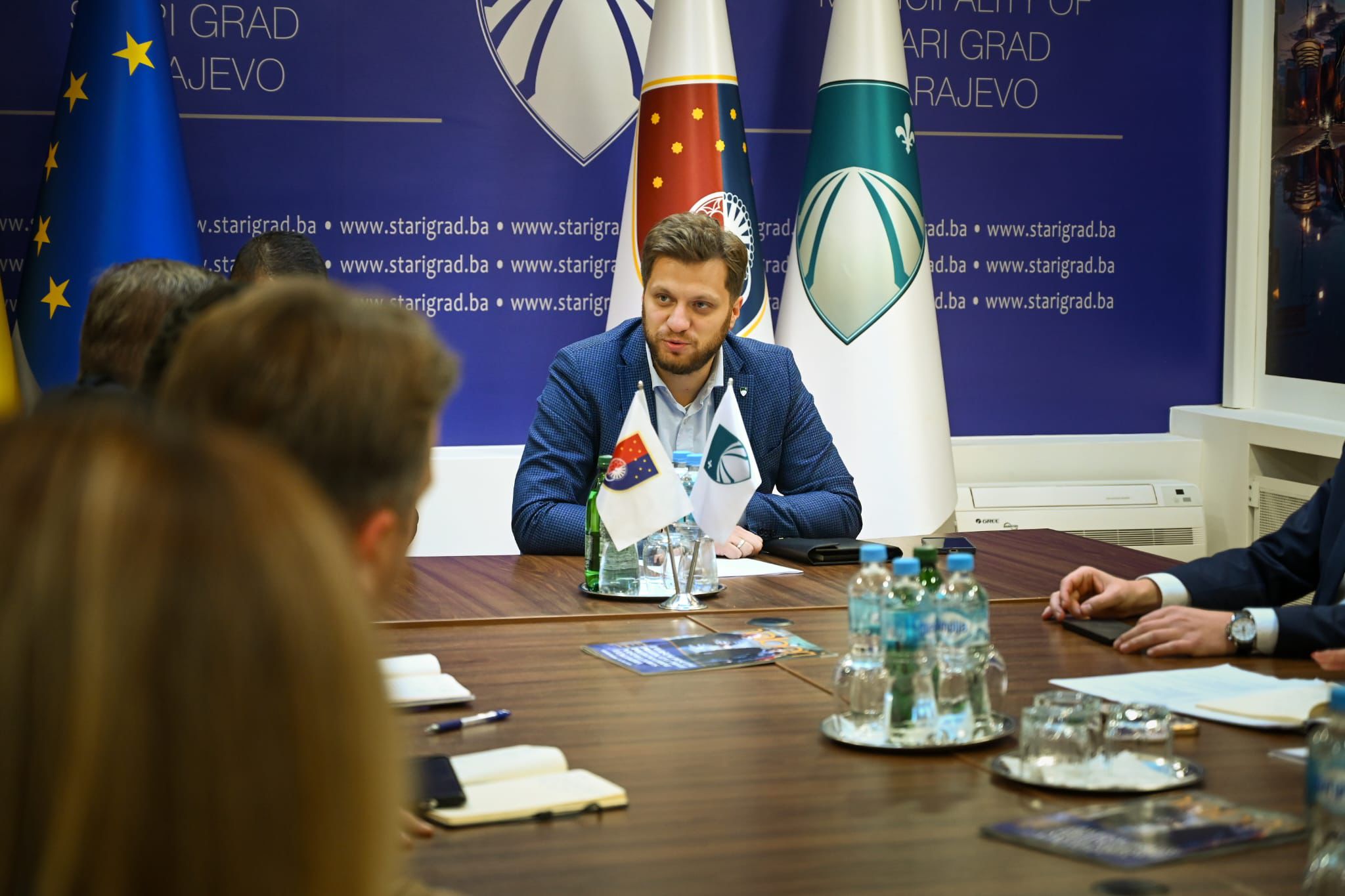 Na sastanku s direktorom KJKP „Vodovod i kanalizacija“ Adnanom Šerakom razgovarano je o više infrastrukturnih projekata, uključujući projekte koji su zapoceti i to izgradnja vodovodne mreže na Borijama i lokalitetu Biosko, kao i o sanaciji vodovodne i kanalizacione mreže u ulici Faletići u okviru projekta koji se finansira sredstvima Evropske banke za obnovu i razvoj (EBRD), a sanacija asflata će biti realizovana zajednički nakon završetka građevinskih radova.